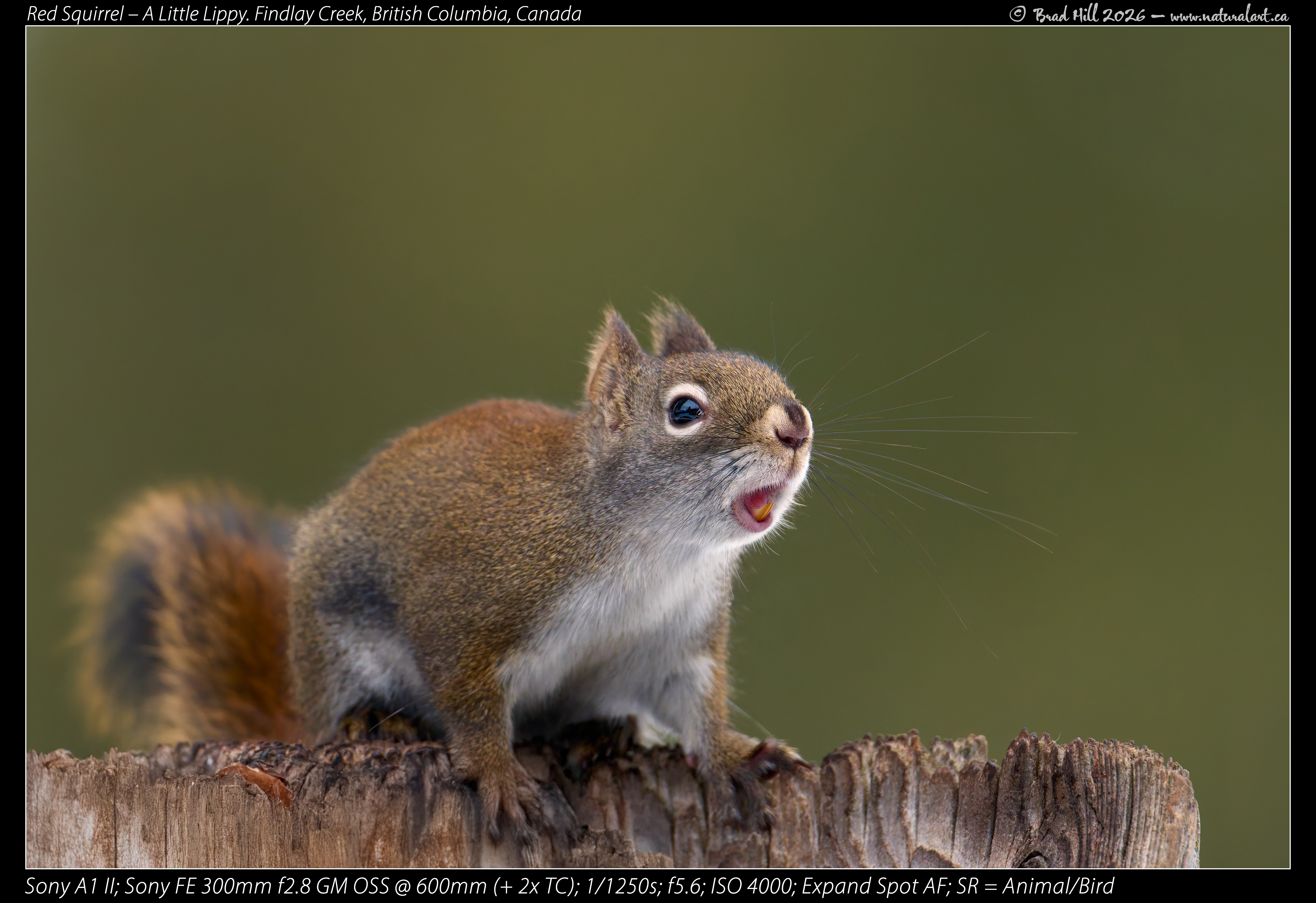 Red Squirrel - A Little Lippy! Findlay Creek, British Columbia, Canada. January 11, 2026.